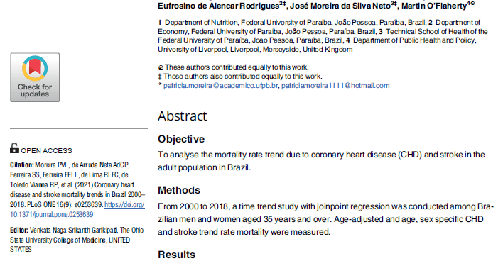 Authors: Bruna Farias da Silva, Adélia da Costa Pereira de Arruda Neta, Rômulo Eufrosino de Alencar Rodrigues, Jevuks Matheus de Araújo, Patrícia Vasconcelos Leitão Moreira, Flávia Emília Leite Lima Ferreira, Rodrigo Pinheiro de Toledo Vianna, José Moreira da Silva Neto, Eduardo de Carli e Rafaela Lira Formiga Cavalcanti de Lima.